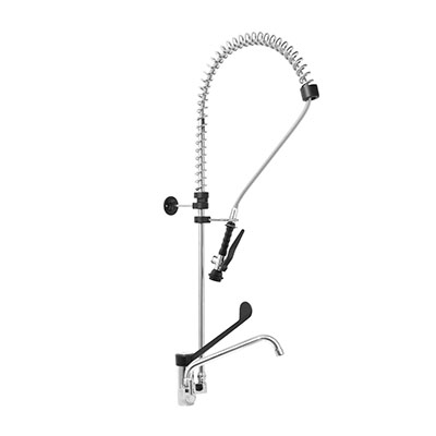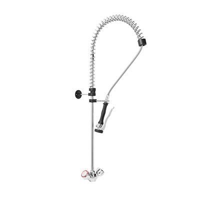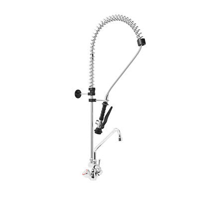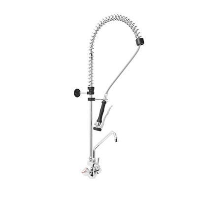 Gruppo Doccia Prelavaggio Monoforo con Canna a Metà Asta, Maniglie Rotonde e Doccetta Basic