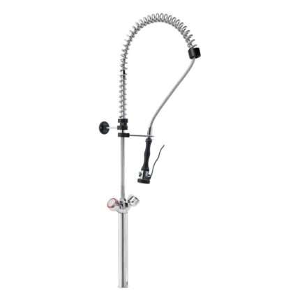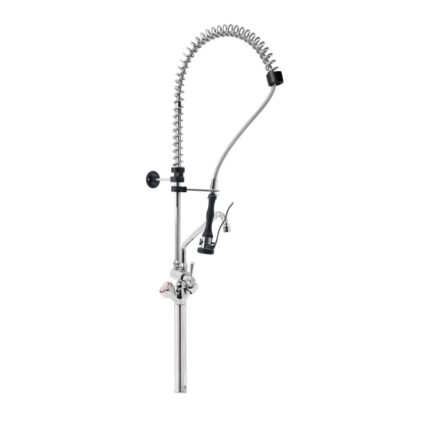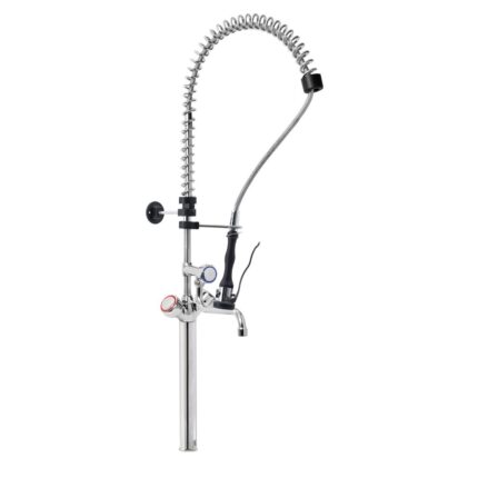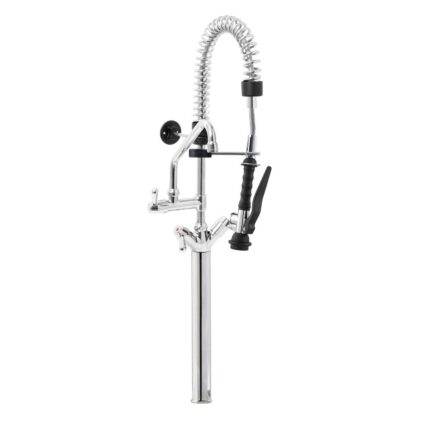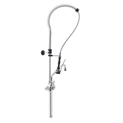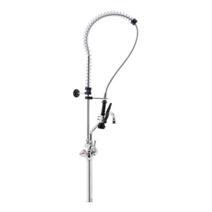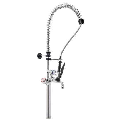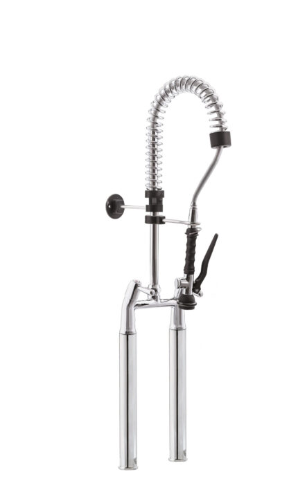 Gruppo Doccia Prelavaggio Monoforo con Prolunga, Canna a Metà Asta, Maniglie Rotonde e Doccetta Premium