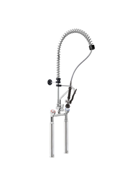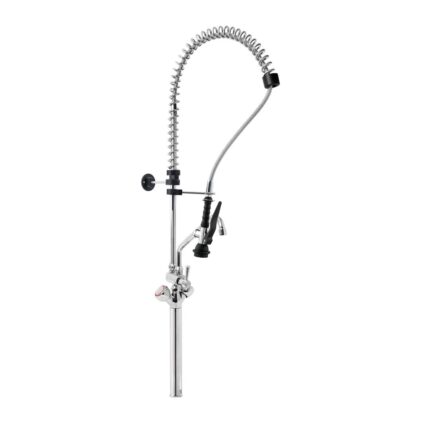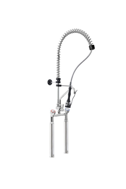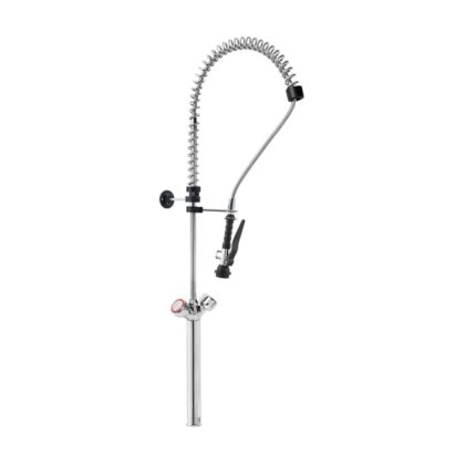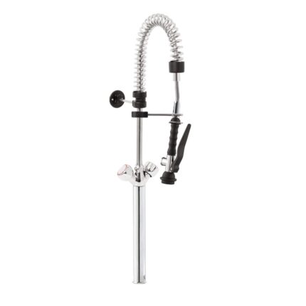 Gruppo Doccia Prelavaggio Monoforo con Prolunga, Canna a Metà Asta, Maniglie Rotonde e Doccetta Basic
